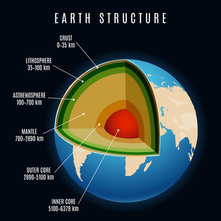 地球の構造 地球の内部の正確な層説明キロメートルの深さと断面ベクトルイラスト からっぽのベクターアート素材や画像を多数ご用意 Istock